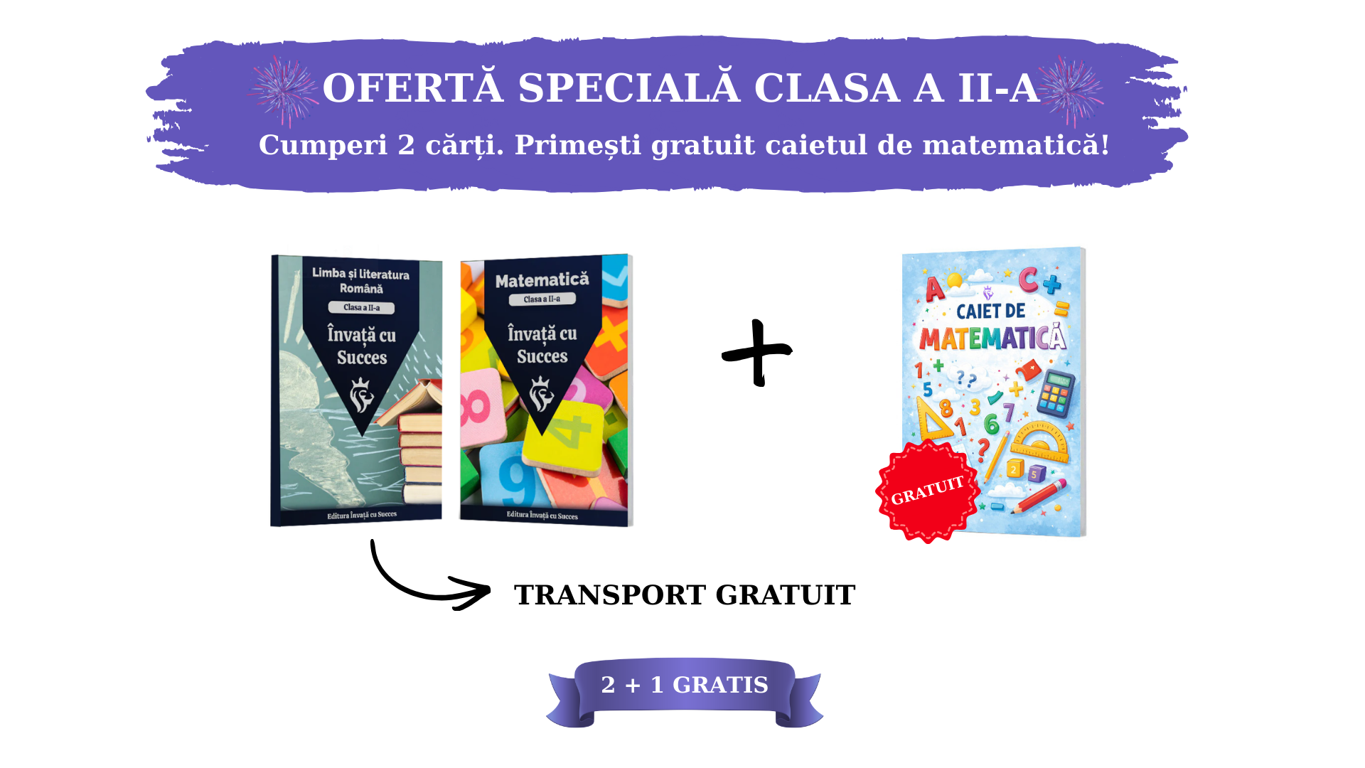 Pachet Clasa a II-a: Toată materia structurată la Română și Matematică pentru clasa a II-a + Caiet Matematică Gratuit !